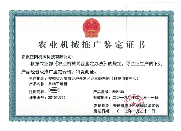 農(nóng)業(yè)機(jī)械推廣鑒定證書……