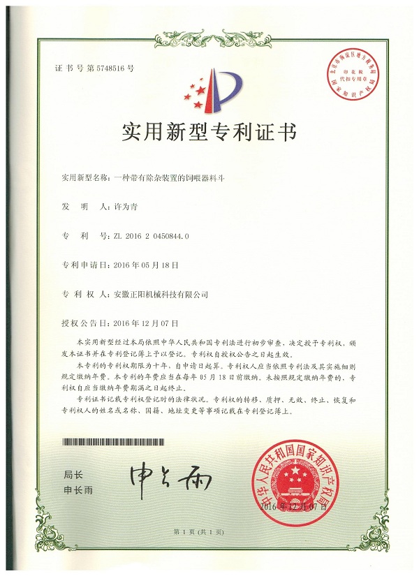 > 正陽機(jī)械 > 榮譽(yù)證書