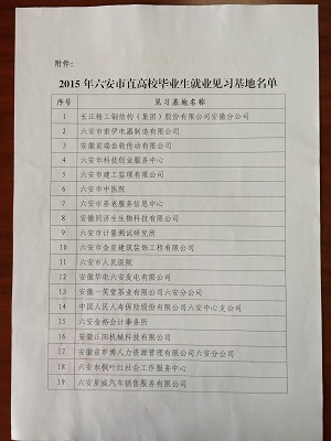 安徽正陽機械科技有限公司榮獲“2015年六安市直高校畢業(yè)生就業(yè)見習基地”殊榮
